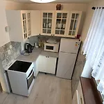 Oferując pełnowymiarową kuchnię, ten apartament posiada lodówkę i przybory kuchenne, zapewniając komfort gościom.